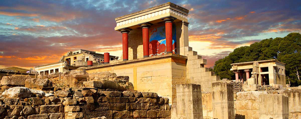 The Palace of Knossos: one of the most advanced cities of ancient Greece and the center of the famous Minoan civilization. The palace of Knossos was the heart of the city and the seat of the legendary King Minos. This brilliant palace was the work of the mythical architect Daedalus. It is connected with great legends like the story of Daedalus and Icarus, the Labyrinth of the terrible Minotaur and the love story of Theseus and Ariadne. The first excavations were made in 1878 by Minos Kalokairinos. Followed by the excavations conducted by the Englishman Sir Arthur Evans, who uncovered the whole palace. Impressive variety of building materials, colored stucco, marble decorations and frescoes decorate rooms and hallways.